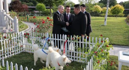 Подарунок, який у КНДР називають "символом миру", Кім вручив Путіну під час прогулянки у саду гостьового будинку "Кимсусан". Як стверджують північнокорейські ЗМІ, російський диктатор залишився задоволеним подарунком, оскільки вважається шанувальником цих тварин. У його колекції близько 10 собак, які подарували йому різні світові лідери.
