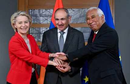 На тлі стрімких подій цього місяця дещо непомітним пройшов візит до Брюсселя прем'єр-міністра Вірменії Нікола Пашиняна. Приїзд був коротким, утім насиченим: вірменський прем’єр зумів зустрітися з президентом Євроради Антоніу Коштою та президенткою Європейської комісії Урсулою фон дер Ляєн, які висловили підтримку демократичним перетворенням у країні, йдеться в офіційному релізі.