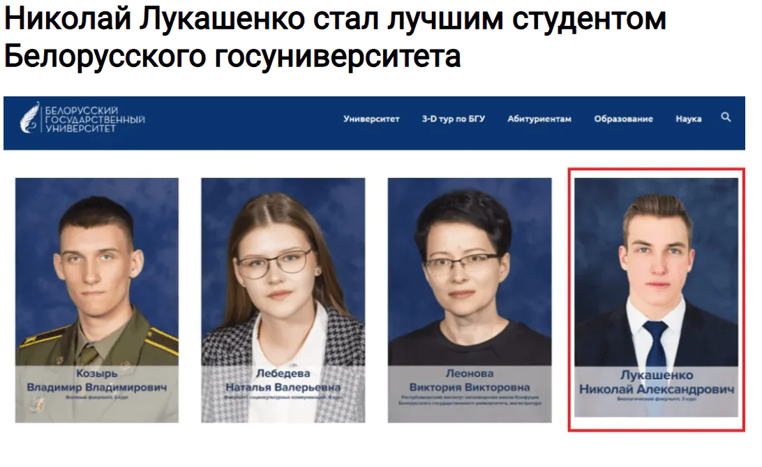 Невдовзі стало відомо, що Микола став найкращим студентом Білоруського університету. До списку "пошани" входять студенти, які добре проявили себе в навчанні: науці, спорті, олімпіадах. Однак невідомо, які саме заслуги Лукашенка допомогли йому отримати цей статус.