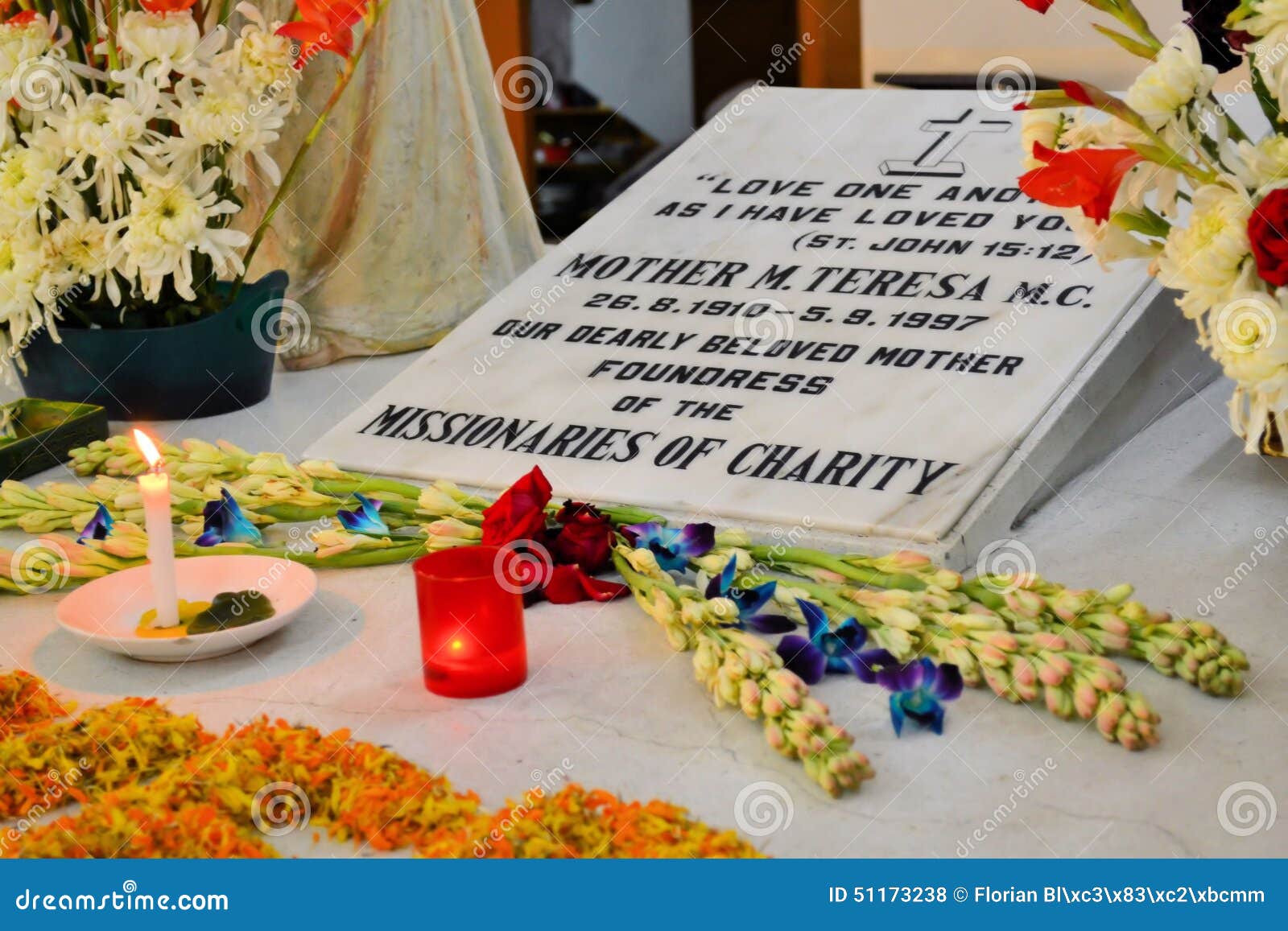 Поховали черницю в Домі матері конгрегації "Місіонери милосердя" у Калькутті де спочивають звичайні люди. Могила виглядає скромно — біла плита з мармуру з написом "Mother Teresa" та епітафією "Love one another as I have loved you" ("Любіть одне одного, як я любила вас"). На місці її починку завжди стоять свіжі квіти, а могила стала місцем паломництва для тисяч людей з усього світу.