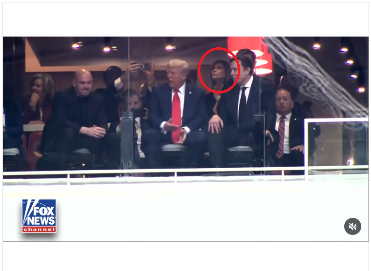Жінку, дуже схожу на першу леді, помітили на кадрах з панахиди за Кірком на стадіоні State Farm у Глендейлі, штат Арізона. На відео видно, що ймовірний "двійник" Меланії незворушно сиділа поза Трампом, поки він мило розмовляв з Ілоном Маском.