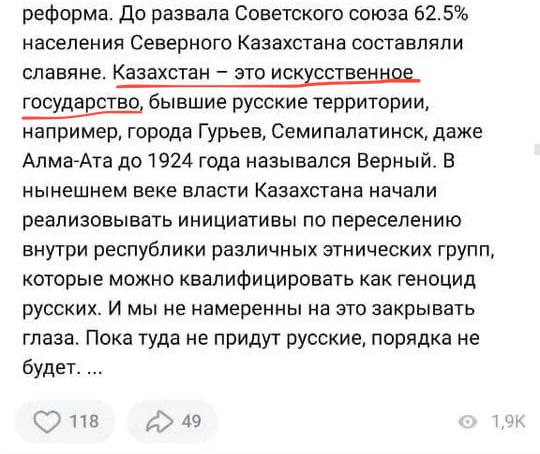 Казахстан має найдовший сухопутний кордон у світі з Росією — 7599 км, і ця лінія часто стає предметом політичних спекуляцій. У Москві не раз лунали заяви про "російські землі" на півночі Казахстану. Медвєдєв у 2022 році опублікував у Telegram допис, у якому назвав Казахстан "штучною державою", — його швидко видалили, але це підтвердило, що питання кордону залишається чутливим подразником у відносинах країн.