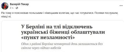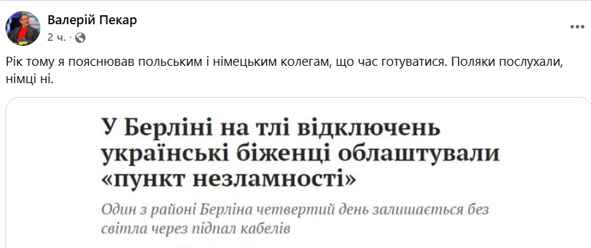 Як зазначив український підприємець і громадський діяч Валерій Пекар, рік тому він пояснював польським і німецьким колегам, що час готуватися. Поляки послухали, німці ні, пише він.