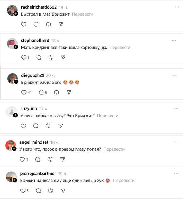 Тим часом у соцмережах розпочалося бурхливе обговорення "підбитого" ока Макрона. Користувачі відразу почали здогадуватися, що побила чоловіка Бріжит Макрон.