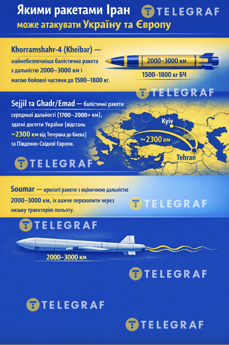 Якими ракетами потенційно Іран може атакувати Україну чи Європу
