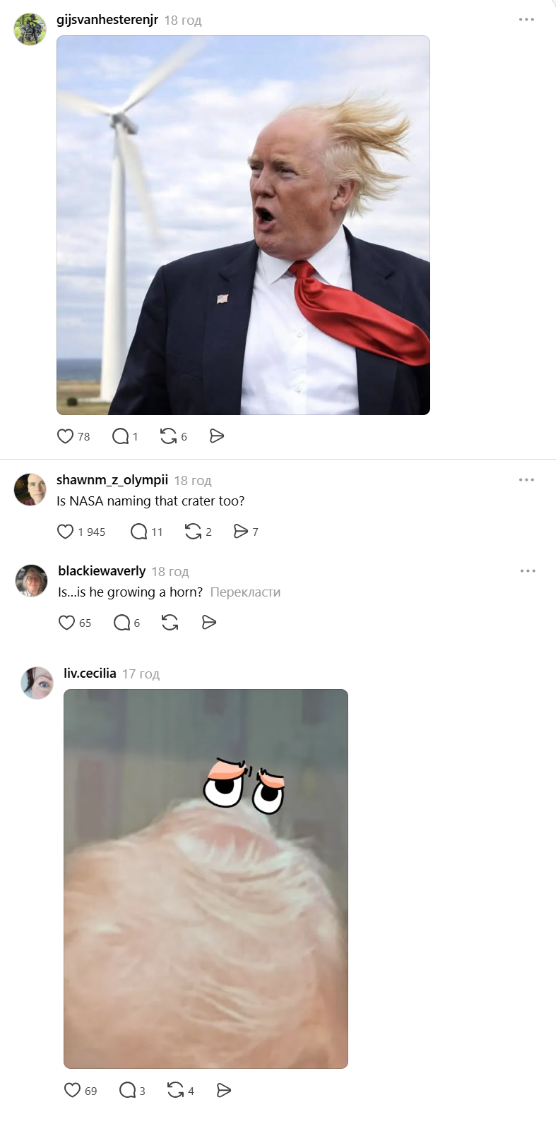 У коментарях до його поста в Threads почалося бурхливе обговорення, користувачі вправлялися у дотепності і жартували на тему "нової" зачіски Трампа.