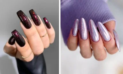 Один з неординарних варіантів — манікюр, повністю створений із сріблястих, золотистих чи інших блискіток. Таке покриття виглядатиме дуже незвично і оригінально .