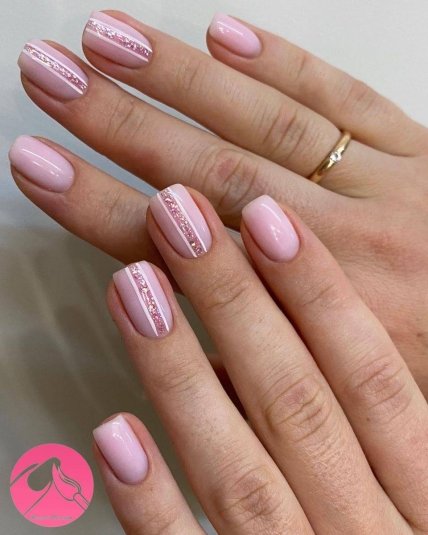- Витончений мінімалізм — рожевий манікюр з глітером