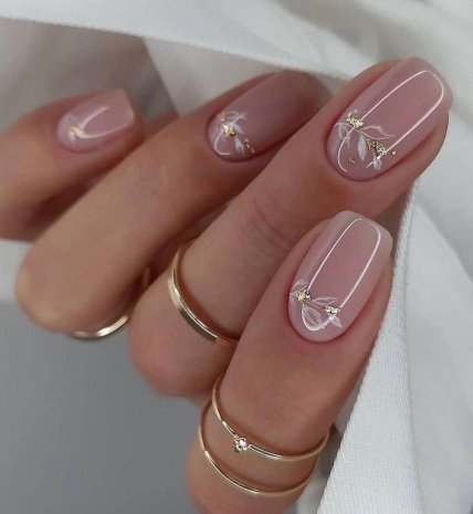 Цей манікюр – втілення жіночності та вишуканості. Нюдові відтінки надають нігтям природності та легкості, а ніжний дизайн додає романтичності та ніжності. Ідеальний вибір для тих, хто цінує природну красу та ніжний стиль.