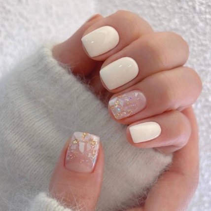 Цей манікюр відрізняється ніжністю та елегантністю. Пастельні відтінки надають нігтям ніжного та романтичного вигляду, а витончені блискітки додають вишуканості та стилю. Витончена ніжність цього дизайну підкреслить вашу жіночність та витонченість.