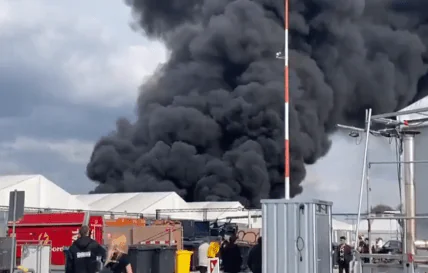 Масштабна пожежа у містечку для біженців з України: палають три велетенські намети (фото, відео)