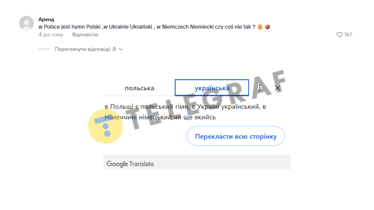 Іншіа полька також підтримала позицію: "А чому б ви мали щось проти польського гімну?".