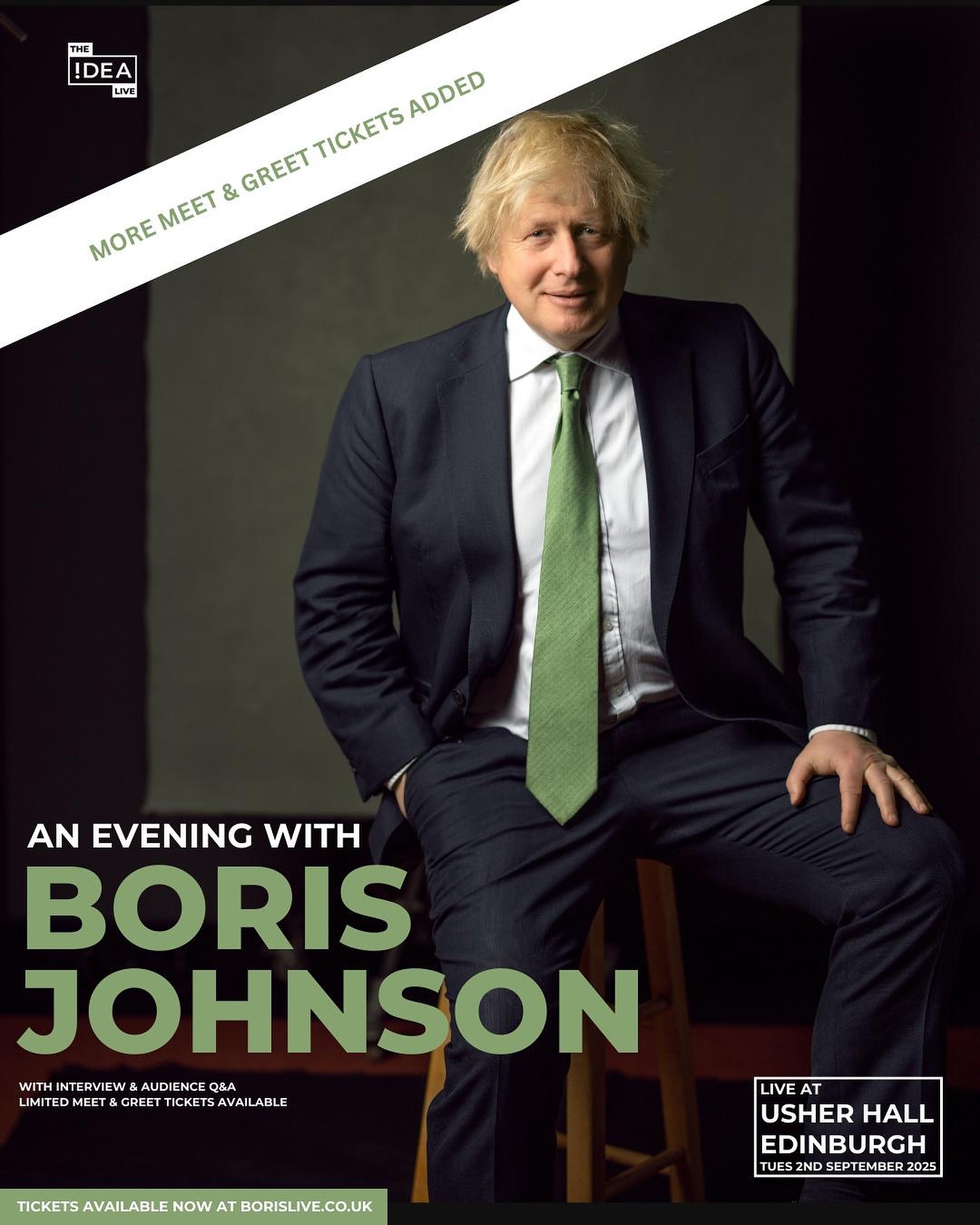 Окрім цього, політик розвиває публічну кар’єру. На своїй сторінці в Instagram він розповів про свій тур "An Evening with Boris Johnson", у рамках якого зустрічається з глядачами, розповідає про свою політичну діяльність та відповідає на запитання публіки. Ці заходи також включають формат Meet & Greet, де можна особисто поговорити з Джонсоном і сфотографуватися з ним до початку основної події. Наступна зустріч з експрем'єром Великої Британії відбудеться 2 вересня в Единбурзі (Шотландія), вартість квитків становить від 49 фунтів стерлінгів до 145 фунтів стерлінгів (близько 2700 — 8100 гривень).