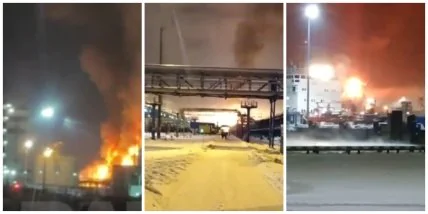 "У Ленінградській області горить термінал Морського торговельного порту. Незадовго до пожежі в Усть-Лузі мешканці найближчих міст повідомляли про звуки безпілотників у небі, потім пролунали вибухи", — пише тг-канал Baza.
