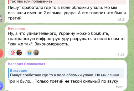 Місцеві жителі також пишуть, що нарахували три вибухи і за потужністю вони не схожі на роботу ППО.