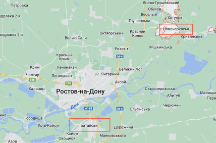 Водночас місцеві телеграм-канали повідомляють, що два вибухи було чути у центрі Ростова та навколишніх районах. А поблизу Воєнведа та Суворовського пролунало не менше трьох вибухів та сирени, ймовірно, на території однієї з військових частин. У Батайську в небі виднівся нібито слід від ППО.