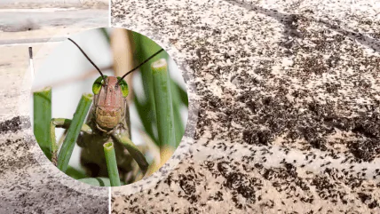 Відео очевидці викладають у соціальних мережах, зокрема у Telegram. Розповідають, що сарана буквально заслала узбіччя та дороги.