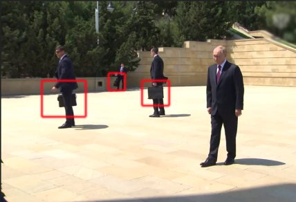 Але головним моментом тут є те, що Путін відвідав меморіал у супроводі одразу кількох охоронців. На відео з місця подій можна побачити, що троє охоронців диктатора тримають у руках валізки.
