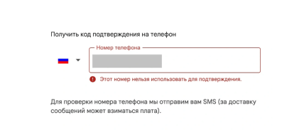 При спробі прив'язати до нового облікового запису російський номер з'являється повідомлення: "Цей номер не можна використовувати для підтвердження".
