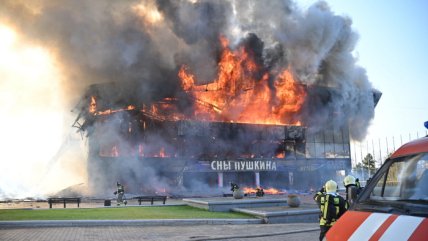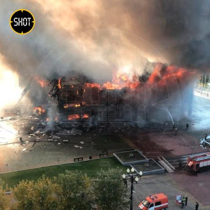 У російському місті Хабаровськ вранці 3 жовтня сталася пожежа у музичному театрі. Вогонь охопив 4000 квадратних метрів площі, обвалився дах та стіни.