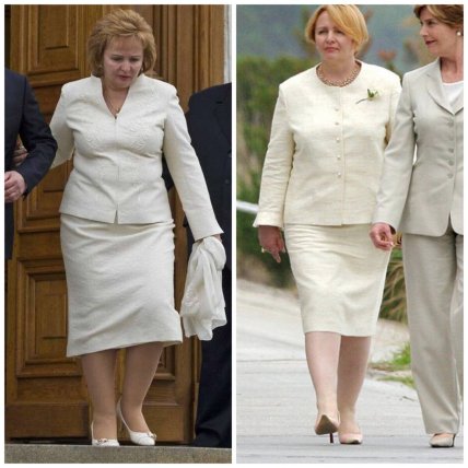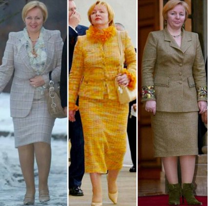 У деяких випадках Людмила намагалась урізноманітнити суворі костюми незвичними деталями. Як-от, кокетливою блузою, "кучерявим" комірцем, принтованими вставками на піджаку. Також Путіна не завжди вдало обирала взуття для своїх образів.