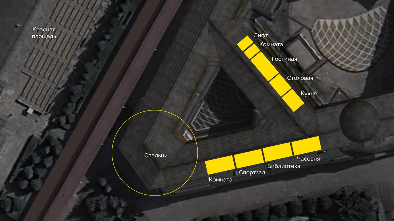 Про це пишуть росЗМІ. За їхніми висновками, апартаменти очільника Кремля розташовані в північній частині будівлі, яка виходить вікнами на Червону площу.