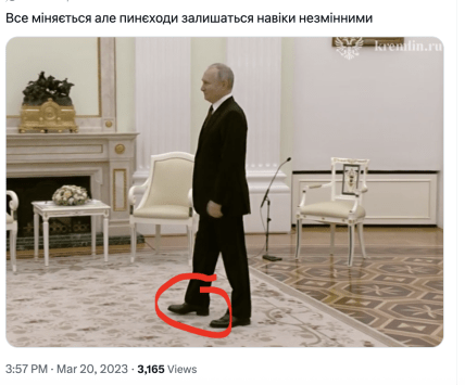 "Сьогодні засвітилися ті легендарні "пинєходи", які додають Путіну 10 сантиметрів зросту", — йдеться у повідомленні.