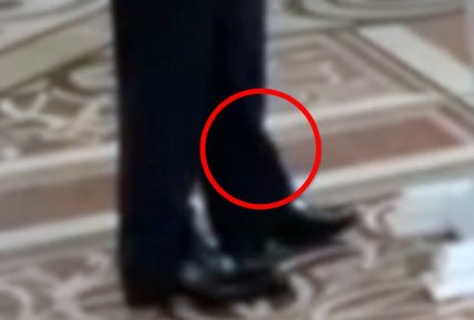 На фото видно, що взуття Путіна має досить дивну форму, а характерний вигин від п'ятки вище самих туфель. Складається враження, що очільник РФ ходить нібито на носочках, а все взуття — суцільна платформа.