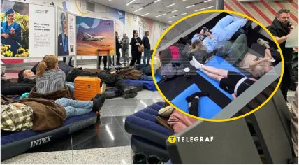 Термінали переповнені розгубленими пасажирами, які змушені влаштовуватись на ночівлю просто на підлозі. Місць на кріслах не вистачає для всіх.