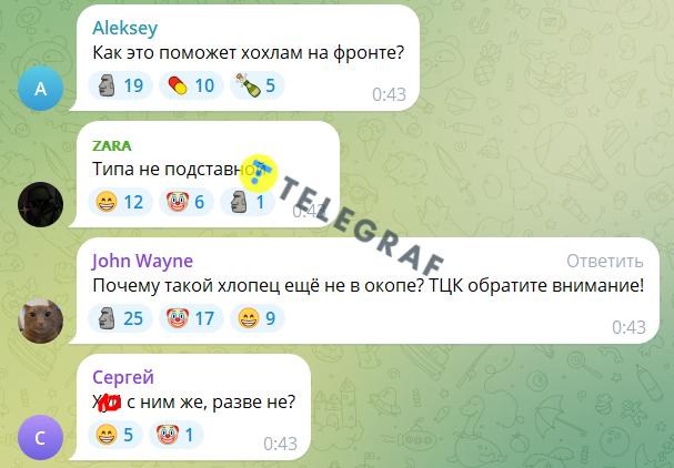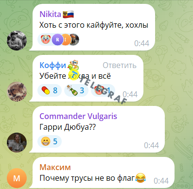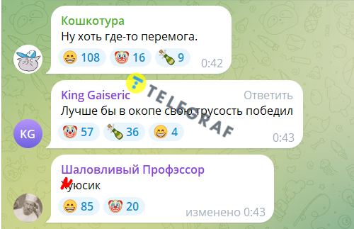 Більшість коментарів росіян – це просто матюки, що саме по собі говорить про рівень розвитку. Ті хто уникав лайки, теж писали безглузді слова на кшталт "Перемога" та "Можливо", думаючи, що цим принижують українців.