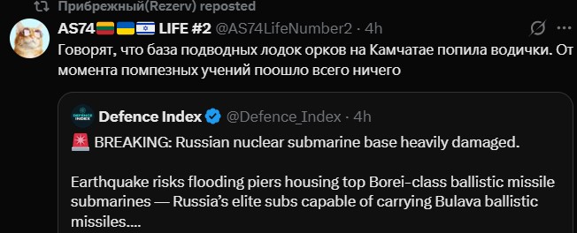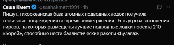 У соцмережах в РФ уже пишуть, що унаслідок землетрусу 30 липня ця тихоокеанська база уже отримала серйозні пошкодження від землетрусу. Згідно з повідомленнями росіян, є загроза затоплення пірсів, на яких розташовані найкращі підводні човни проєкту "Борей". Вони можуть нести балістичні ракети "Булава" та інші. Втім, інформація потребує верифікації.