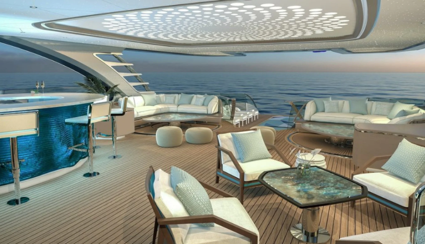 На судні розташоване газове багаття і є зона відпочинку, яка перетворюється на кінотеатр. Каюта власника облаштована приватною терасою.