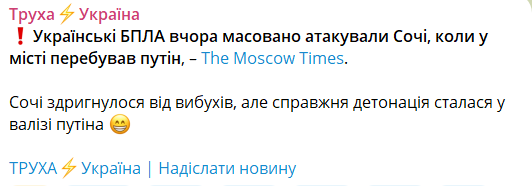 "У валізі точно була детонація": атака дронів на Сочі під час візиту Путіна стала мемом дня