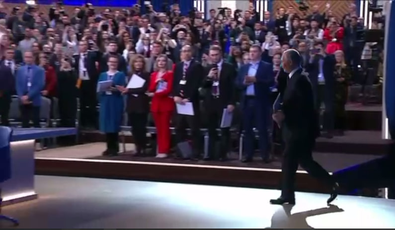 Щоправда, носить він їх не завжди. Наприклад, на прямій лінії з російським президентом 19 грудня, проходку Путіна до столу показали буквально кілька секунд. Проте видно — взуття нормальне.