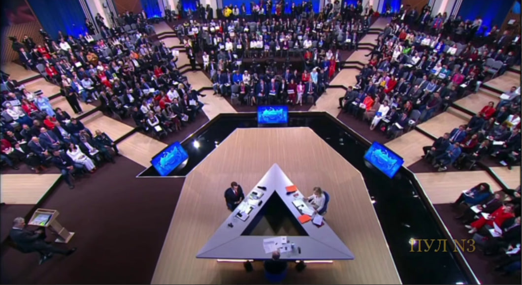Зазначимо, що на цьому заході Путіну не доводилось стояти тривалий час поруч з іншими людьми — він сидів за столом, де не видно його ніг. При цьому знімали Путіна з вигідних ракурсів.
