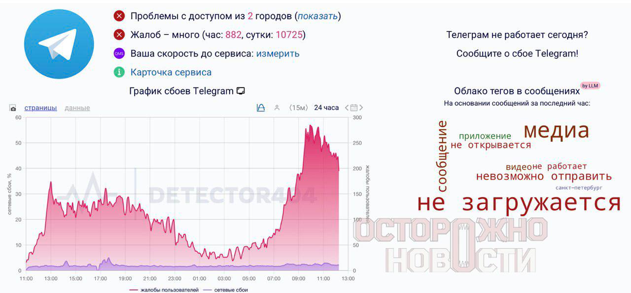 У Росії уповільнили Телеграм. Скрін: "Обережно новини"