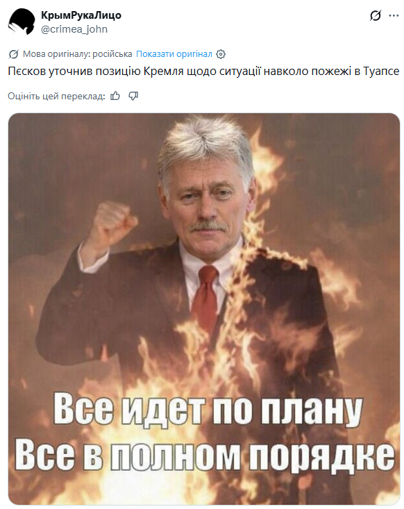 Путін скоро почорніє: у мережі все більше мемів про повторний удар по Туапсе