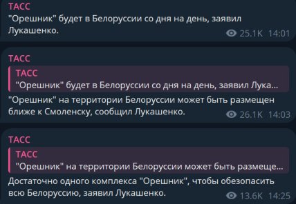 Як повідомляють російські Telegram-канали, це може статися "з дня на день". За словами Лукашенка, ракети можуть розмістити ближче до російського Смоленська.