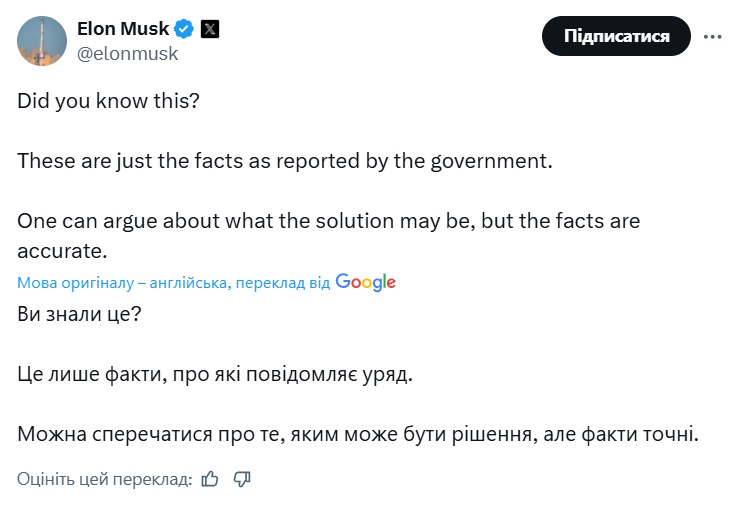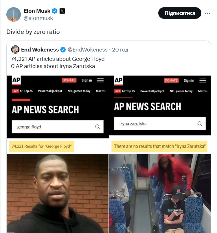Тому, швидше за все, Маск звернув увагу на вбивство, оскільки воно вписується в його ідеологію, а не тому, що він співчуває вбитій українці.