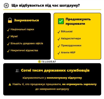 За даними Reuters, цього разу шатдаун може стати приводом для масових звільнень у держсекторі. Білий дім уже попросив відомства підготувати списки на скорочення персоналу. Чиновники панікують — багато хто не розуміє, чи залишиться на роботі після 1 жовтня.