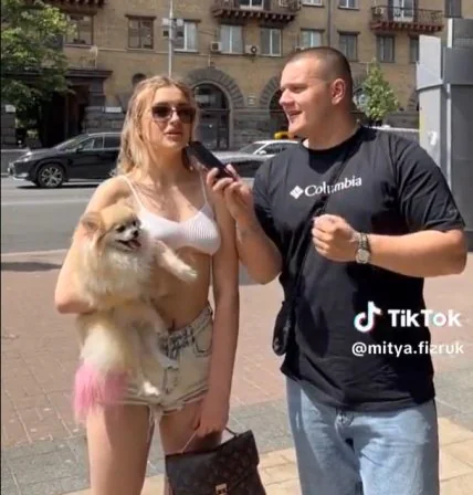 Молода блондинка ходила Києвом із собачкою на руках. За її словами, їй абсолютно неважливо скільки зароблятиме чоловік. Якщо потрібно, вона сама забезпечить його та навіть його сім’ю. На себе вона нібито витрачає 4 тисячі доларів на місяць (приблизно 160 тисяч гривень). А утримання вихованця їй обходиться "дешево" — 4 тисячі на місяць, але не уточнила валюту.