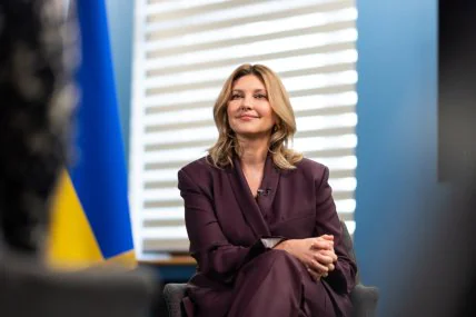 На офіційному акаунті 46-річної першої леді України у Телеграмі були викладені світлини, зроблені під час розмови Зеленської з журналісткою британській телемережі ITV. На них Олена Зеленська позує у стриманому костюмі трендового сливового кольору осені 2024.