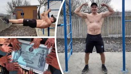 — Як я готувався встановлювати рекорд з відтискання на брусах? — перепитує 45-річний Юрій Балясний з села Петрівка-Роменська Миргородського району. — Та ще років з тринадцяти. У мене була мрія — володіти гарним тілом. Тому в мене завжди був удома турнік, гантелі, я бігав, присідав, відтискався… Тільки не знав, що то все називається воркаут (усміхається). Ні в спортзалі, ні на спортивному майданчику ніколи не займався. Тепер у мене є і тренажери на подвір’ї, і турнік у хаті. І вже давно щодня зранку і ввечері — хай там дощ чи мороз — в одних шортах і кепці та спеціальних рукавичках (хоча можу й без них) загалом півтори години займаюсь силовими вправами.