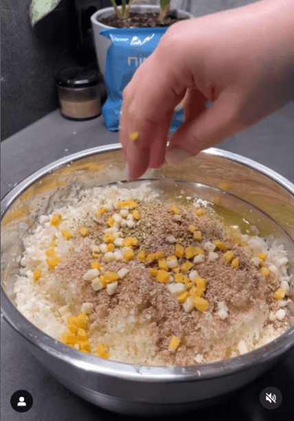 3.Додати до капусти яйця, висівки, орегано, сіль, перець та сир, все гарно перемішати. Консистенція тіста має нагадувати мокрий пісок.