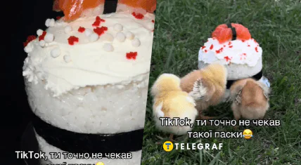 У TikTok набирає популярності відео з авторським рецептом "паски по-японськи" — страви, яка зовні нагадує великодню пасху, але складається виключно з інгредієнтів для суші. Авторка виклала рис у циліндричну форму, змастила вершковим сиром, прикрасила червоною рибою, ікрою та обгорнула страву стрічкою з норі.