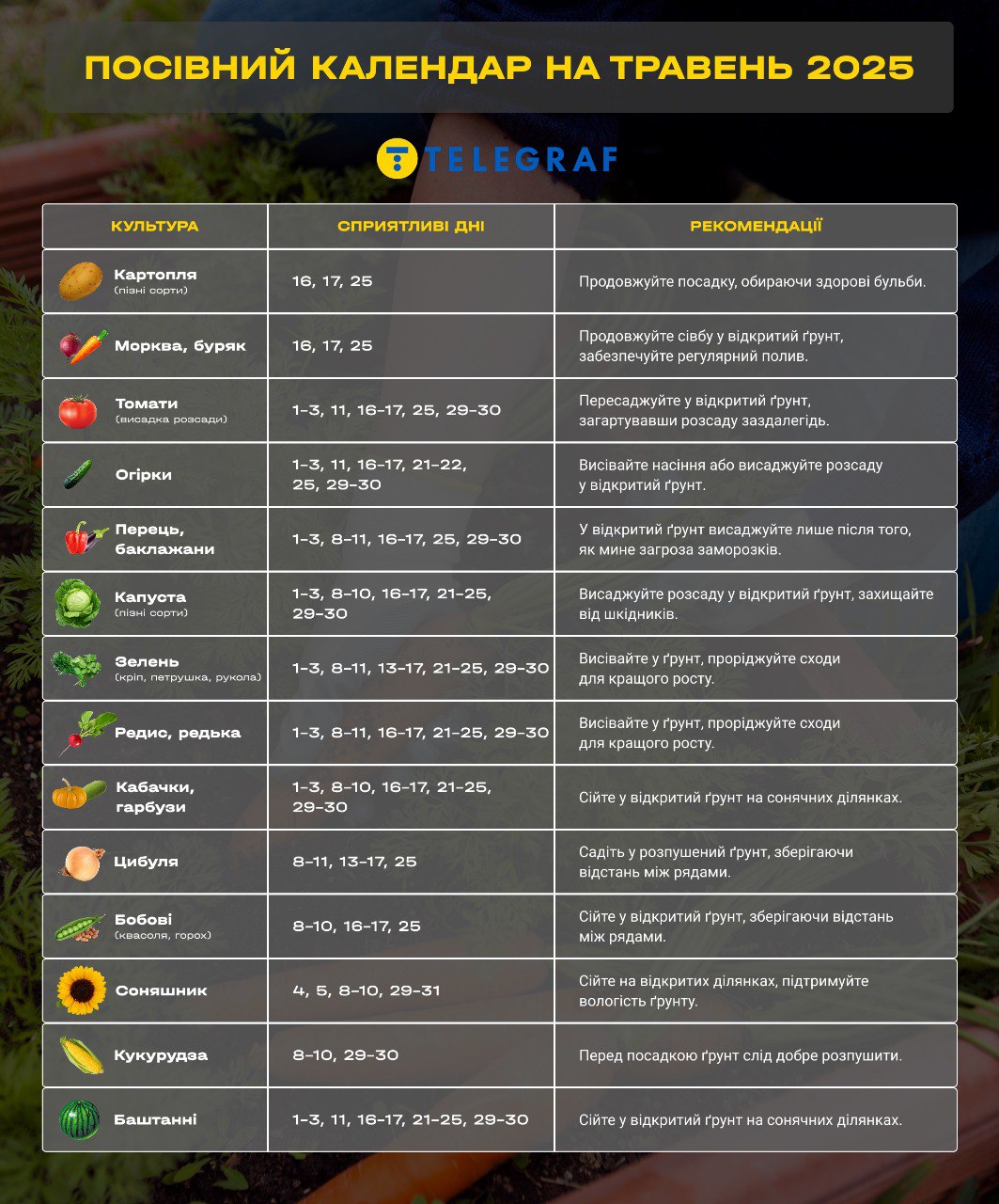 "Телеграф" представив календар сприятливих днів на травень 2025 року, на які слід орієнтуватися, перш ніж сіяти кукурудзу. Попри те, що це невибаглива культура, вона потребує правильної технології посадки.