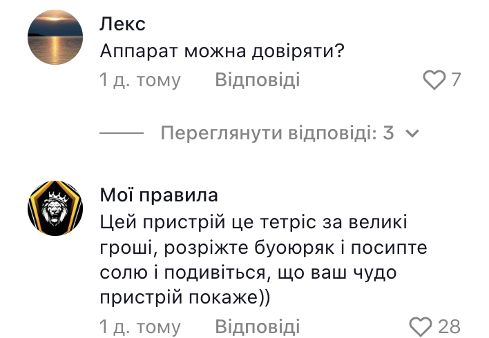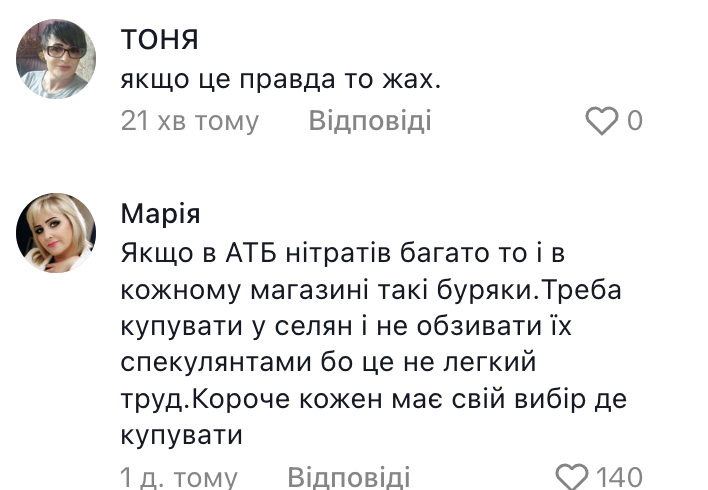 У коментарях думки користувачів розділились, хтось писав, що прилад показує неправильно і йому довіряти не можна. А хтось зазначав, що в магазинах та супермаркетах краще не купувати ніякі овочі та фрукти, буцімто на ринку домашнє та без хімії.