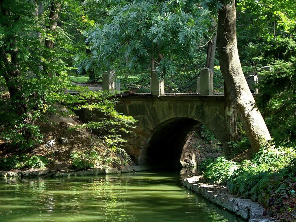 - Венеціанський місток — ще одна перлина дендропарку, під яким вироблена арка. Він оточений деревами та кущами, що створює романтичну атмосферу для прогулянок у будь-яку пору року. Раніше це була переправа для карет.