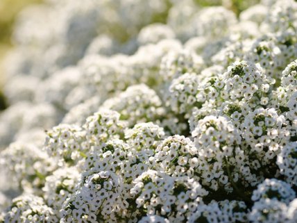- Вдалим варіантом є алісум — рослина, яка сама розростається та є стійкою до посухи. Вона цвіте різними кольорами: білим, рожевим, жовтим. Тож можна поєднати їх та зробити красиву композицію.