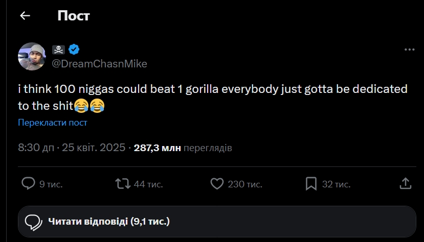Воно з'явилося на платформі X (раніше Twitter) та швидко стало вірусним. Публікація зібрала понад 287 мільйонів переглядів.